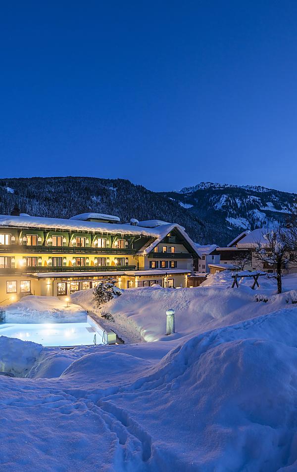 ...and all those who want to stay that way forever are at the right place with us. Our family hotel in the Salzkammergut is located in the middle of a winter wonderland: just a five-minute walk from the slopes, fairy-tale cross-country trails, and the jingling bells of the next horse-drawn sleigh ride.
